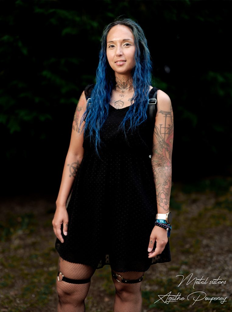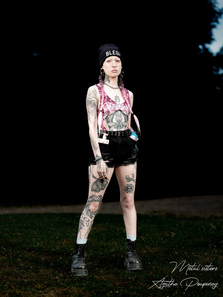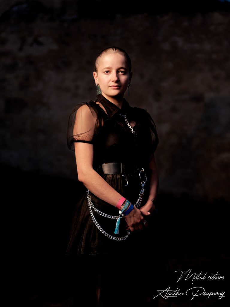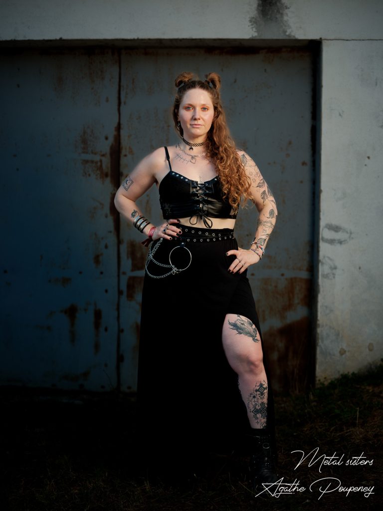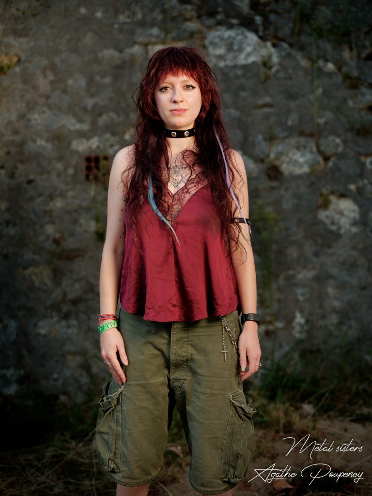 Metal Sisters – Debout dans le son est une série de portraits réalisés lors du Kave Fest et du Festival 666. Des artistes, des bénévoles, des festivalières : des femmes qui vivent le metal pleinement, chacune à leur manière, sans justification ni revendication. À travers ces portraits posés, j’ai voulu montrer ce que l’on voit trop peu : une présence réelle, diverse, lumineuse.
